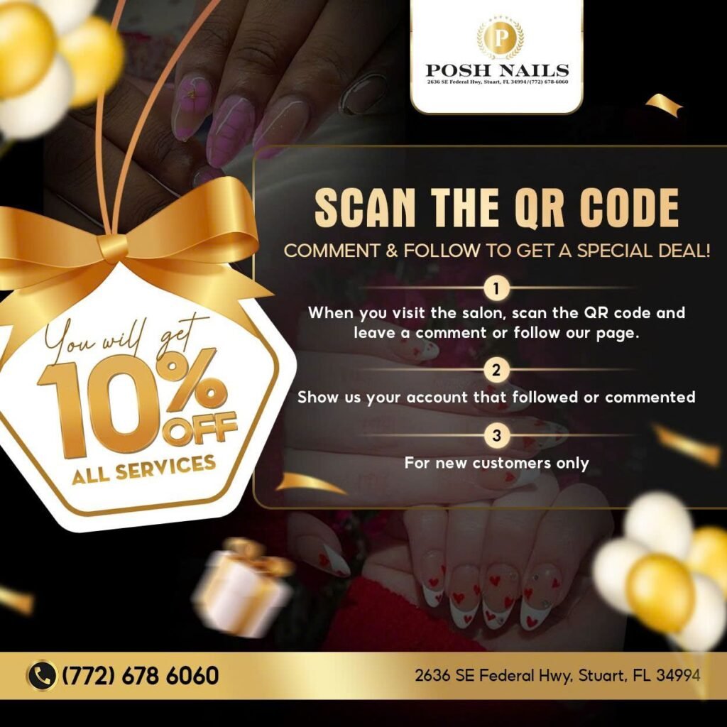 Whether you’re a new visitor or a returning client, we strive to make each appointment a memorable experience. Call us at (772) 678-6060 to book your next appointment and discover the Posh Nails difference!